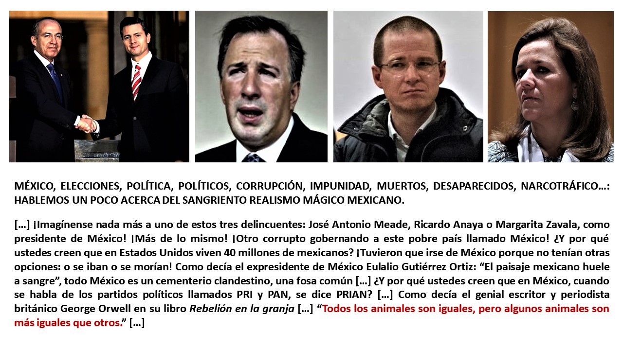 ← back to “[…] DESDE QUE APARECIERON INTERNET Y LAS REDES SOCIALES EL MUNDO ENTERO SABE QUE EN LAS CAMPAÑAS POLÍTICAS Y LAS ELECCIONES DE MÉXICO HAY DINERO SUCIO DEL NARCOTRÁFICO, DEL NARCO, Y LOS MEXICANOS QUE NO CONOCEN LOS NOMBRES DE LOS POLÍTICOS INVOLUCRADOS ES PORQUE NO QUIEREN, PORQUE EN TODO INTERNET ESTO SE GRITA EN TODOS LADOS […] EN EL CRIMEN QUE SE COMETIÓ CONTRA LOS ESTUDIANTES DE AYOTZINAPA, LOS ESTUDIANTES DE CINE DE JALISCO JAVIER SALOMÓN ACEVES GASTÉLUM, JESÚS DANIEL DÍAZ GARCÍA, MARCO FRANCISCO GARCÍA ÁVALOS, Y OTROS, ESTÁN INVOLUCRADOS POLÍTICOS MEXICANOS, YA SEA PORQUE SON PARTE DE LA MAFIA CRIMINAL MEXICANA O PORQUE SON CÓMPLICES CON SU SILENCIO: EL SILENCIO CÓMPLICE TAMBIÉN TE HACE CULPABLE […]”