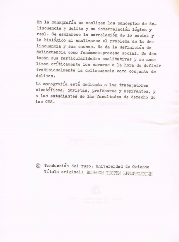 LIBRO. Bóris Danilóvich Ovchínnikov. Problemas teóricos de la criminología. 1988.