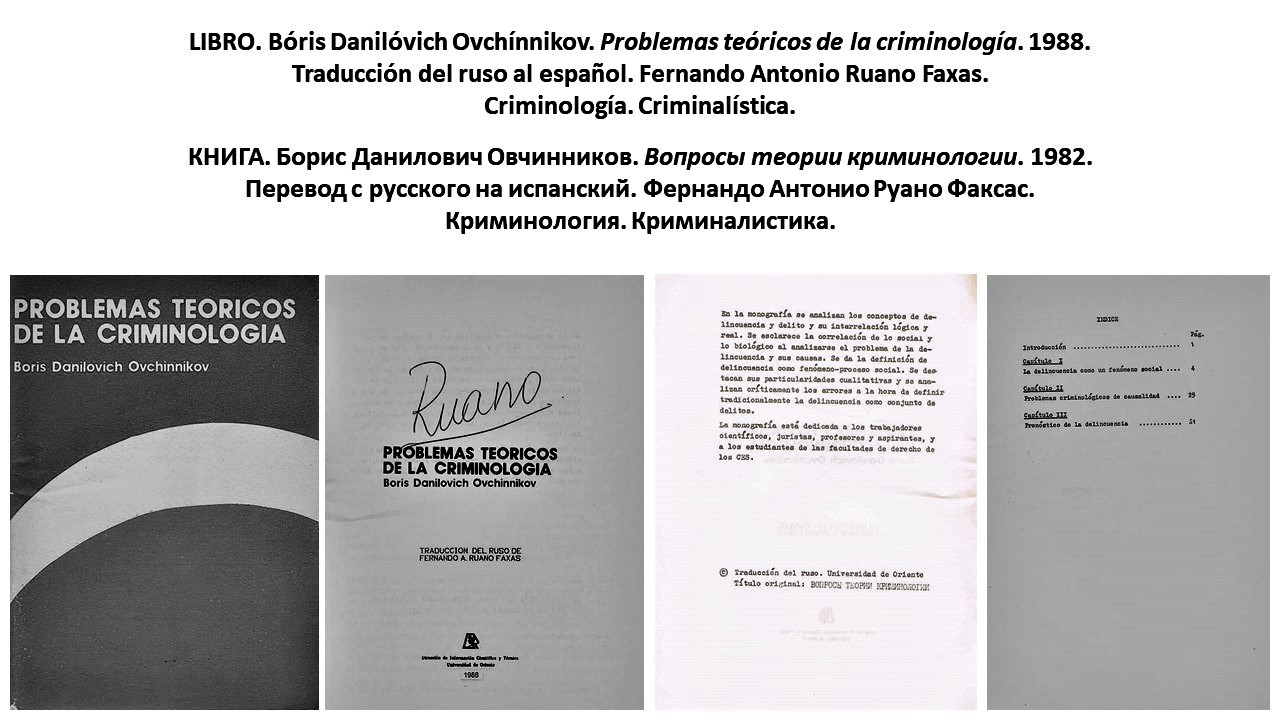 ← back to “LIBRO. Bóris Danilóvich Ovchínnikov. Problemas teóricos de la criminología. Traducción del ruso al español. Fernando Antonio Ruano Faxas. Criminología. Criminalística. КНИГА. Борис Данилович Овчинников. Вопросы теории криминологии. Перевод с русского на испанский. Фернандо Антонио Руано Факсас. Криминология. Криминалистика.”