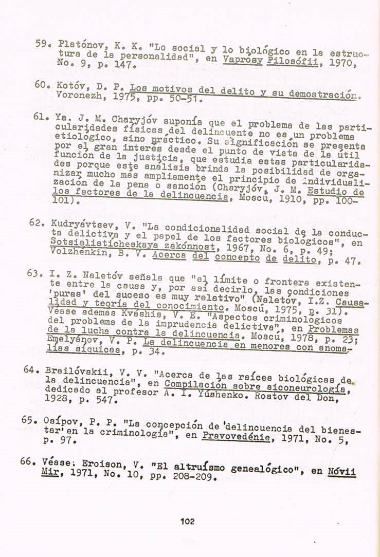 Bóris Danilóvich Ovchínnikov. Problemas teóricos de la criminología. Fernando Antonio Ruano Faxas. Criminalística. 102