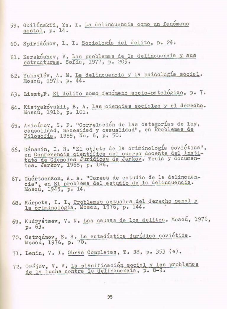 Bóris Danilóvich Ovchínnikov. Problemas teóricos de la criminología. Fernando Antonio Ruano Faxas. Criminalística. 95