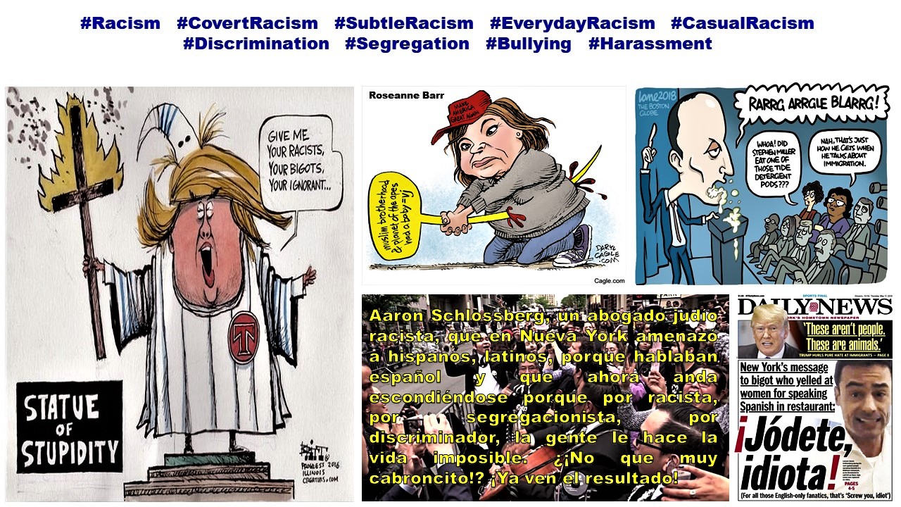 GOP, MAGA, ELECTION, TRUMP, STEPHEN MILLER, AARON SCHLOSSBERG, ROSEANNE BARR, RACISM, COVERT RACISM, SUBTLE RACISM, EVERYDAY RACISM, CASUAL RACISM, DISCRIMINATION, SEGREGATION, BULLYING,