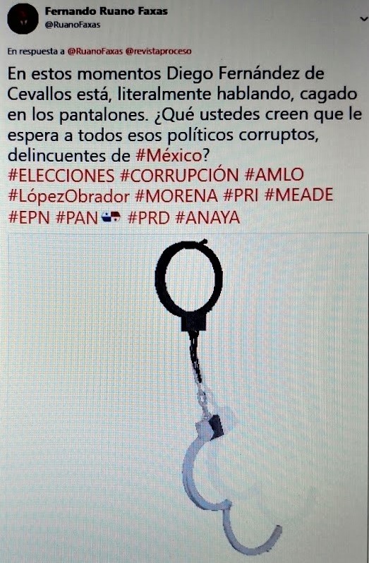 «Claro, los políticos mexicanos serán “incoherentes”, “analfabetos” […] pero la principal característica de los políticos mexicanos es que son “altamente corruptos”, “altamente delincuentes”, y en ciertos casos más que conocidos “burdos y sucios criminales”, individuos, ya sean hombres, mujeres o “tercer sexo” involucrados no ya solamente en persecución, compra y venta de seres humanos, tráfico de todo tipo, como es el caso de los migrantes o indocumentados, persecución y amenazas de todo tipo contra los periodistas e intelectuales, sino peor todavía, estamos hablando de acusaciones por crímenes de lesa humanidad, crímenes contra la humanidad»