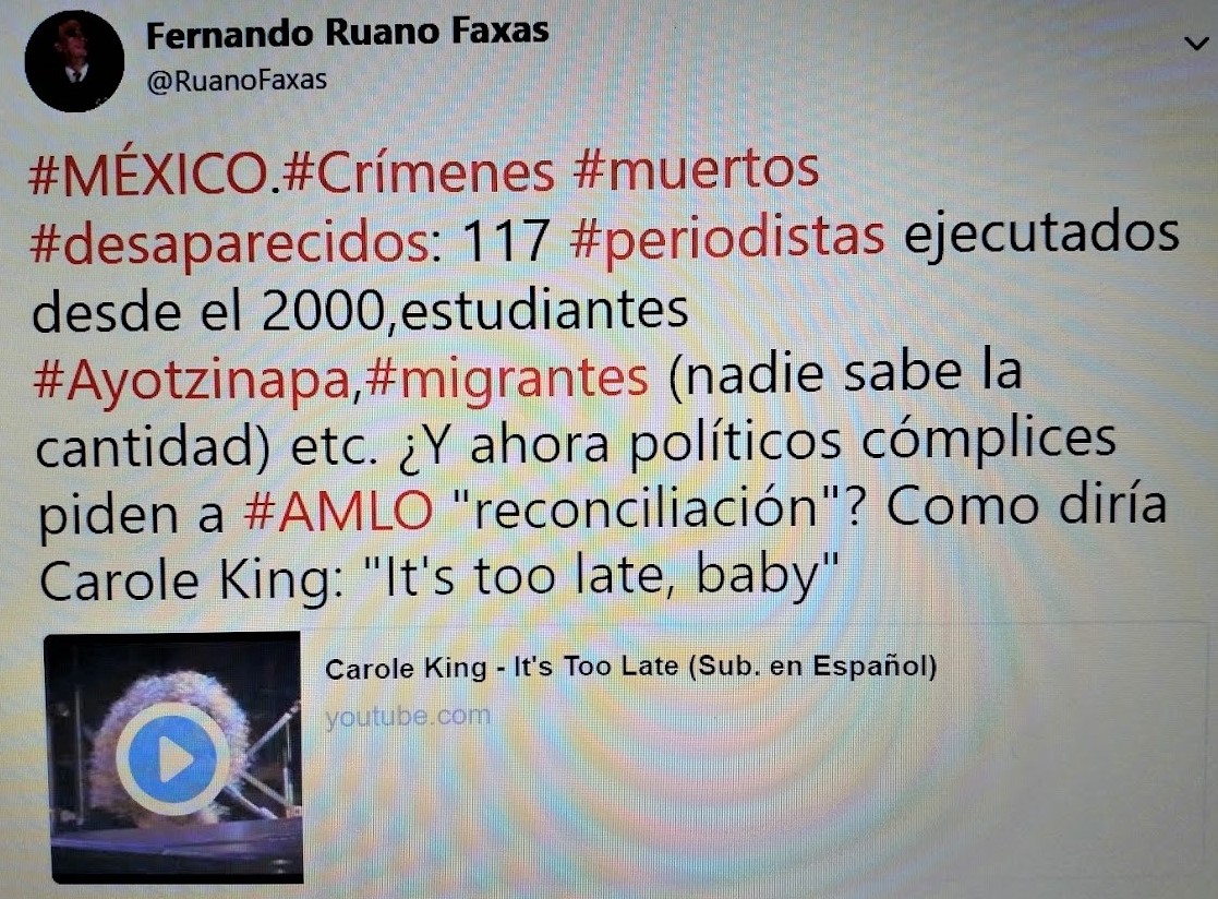FERNANDO ANTONIO RUANO FAXAS. MÉXICO, IMAGOLOGÍA, PAISOLOGÍA, ELECCIONES, CORRUPCIÓN, NARCOTRÁFICO, PERIODISTAS, AYOTZINAPA, MUERTOS, DESAPARECIDOS, MIGRACIÓN, MIGRANTES, AMLO, LÓ