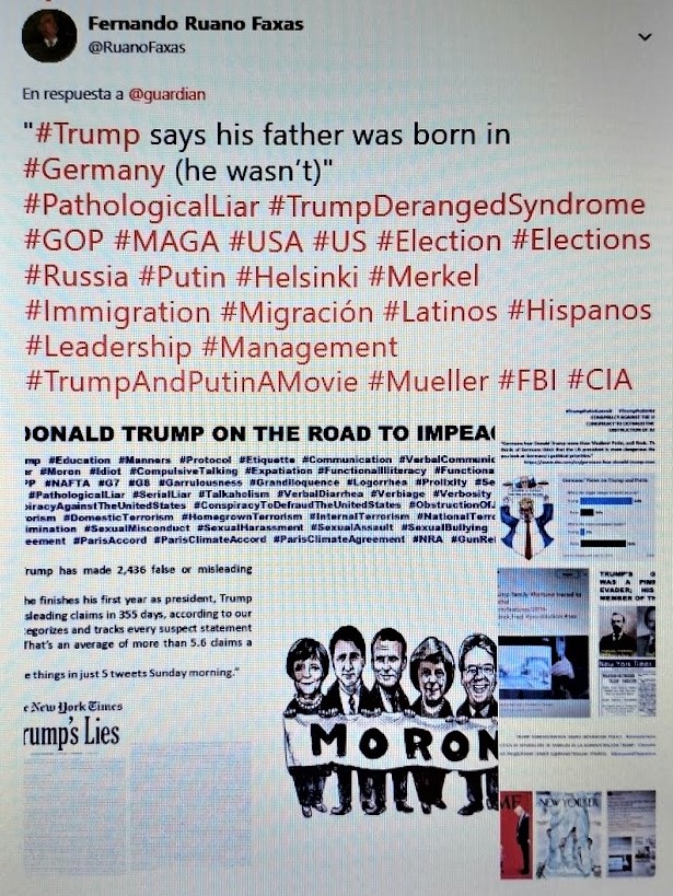 FERNANDO ANTONIO RUANO FAXAS. TRUMP, PUTIN, HELSINKI, ELECTION, RUSSIA, RUSIA, MUELLER, FBI, CIA, GOP, MAGA, CLINTON, FUNCTIONAL ILLITERACY, PATHOLOGICAL LIAR, FATHER, GRANDFATHER, GERMA