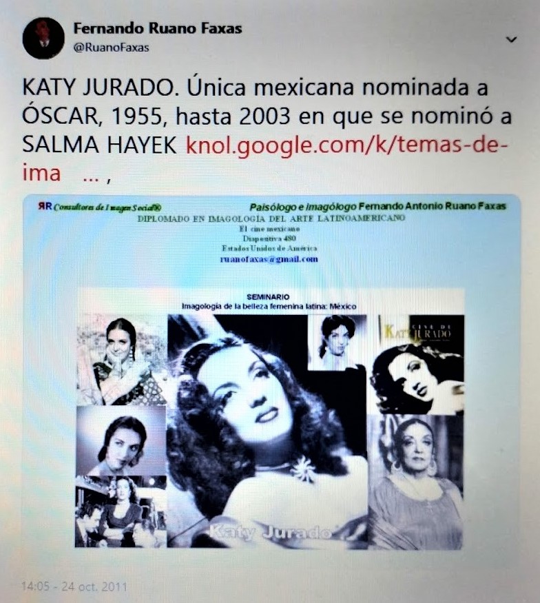 fernando antonio ruano faxas. imagologÍa, paisologÍa, cine, mÉxico, mexicanos, premio oscar, hollywwod, katy jurado