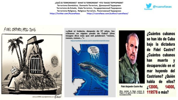 […] De lo que hizo y no hizo Ernesto Che Guevara en Cuba […] “Sí, estamos fusilando y seguiremos fusilando a todos los que se opongan a la Revolución” (Ernesto Che Guevara en la ONU, diciembre de 1965) […] ¿Cuántos son los #cubanos #desaparecidos #muertos en #Cuba durante el #Castrismo: 12000, 14000, 119578? ¿Quién sabe? ¿Quiénes son? ¿Cómo se llaman? ¿Dónde están? […] Historias que a “los cubanos de adentro” siempre el gobierno de los Castro les ha ocultado […] Pero resulta que hoy existe INTERNET y todo se sabe, en todos los idiomas de este mundo, por eso “los cubanos de afuera” pueden contar libremente “las historias prohibidas en Cuba” […] #Liberty #Libertad #Liberdade #Свобода / #Rights #Derechos #Direitos #Права / #Censorship #Censura #Цензура / #Respect #Respeto #Respeito #Уважение / #Bullying #Acoso #Acosso #Буллинг #Задирание #Травля / #Harassment #Hostigamiento #Perseguição #Домогательство / #Barbarism #Barbarity #Barbarie #Barbárie #Варварство / #ConcentrationCamp #Internment #CampoDeConcentración #CampoDeConcentração #КонцентрационныйЛагерь #Концлагерь / #ShellShock #NeurosisDeGuerra #NeuroseDeGuerra #СнарядныйШок […]