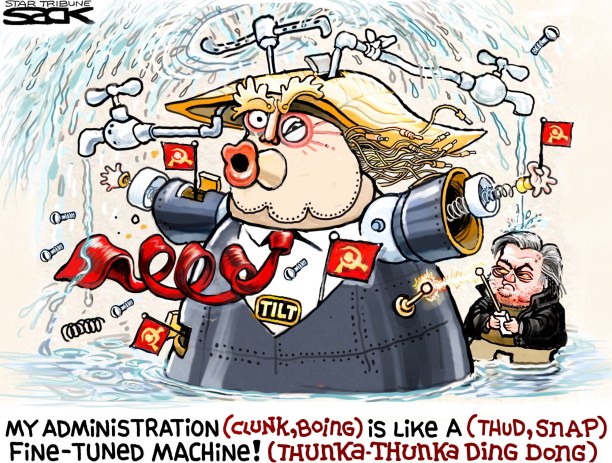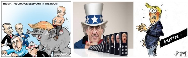 “Las fanfarronadas del rey” o “El ocupante de la Casa Blanca que le pidió ayuda a Rusia, a Putin, para llegar al poder”.