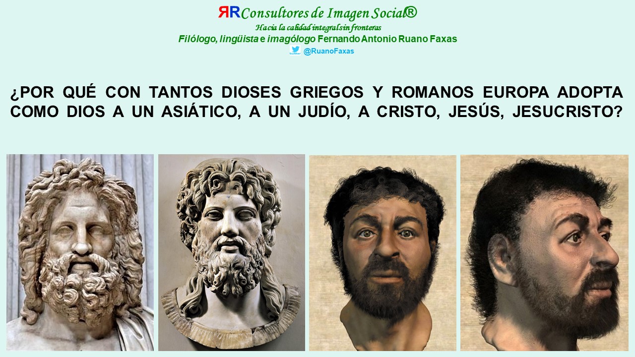 FERNANDO ANTONIO RUANO FAXAS. IMAGOLOGÍA, RELIGIONES. POR QUÉ CON TANTOS DIOSES GRIEGOS Y ROMANOS EUROPA ADOPTA COMO DIOS A UN ASIÁTICO, A UN JUDÍO, A CRISTO, JESÚS, JESUCRISTO