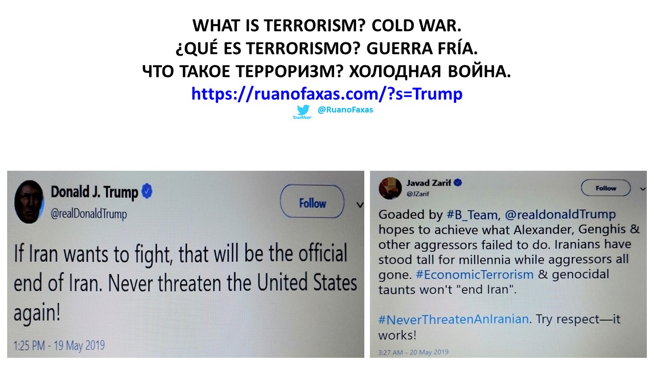 FERNANDO ANTONIO RUANO FAXAS. WHAT IS TERRORISM, QUÉ ES TERRORISMO, ЧТО ТАКОЕ ТЕРРОРИЗМ. TRUMP, PENCE, POMPEO, IRAN, JAVAD ZARIF, ALI KHAMENEI, HASSAN ROUHANI, ELECTION, RUSSIA, PUTIN, CHINA