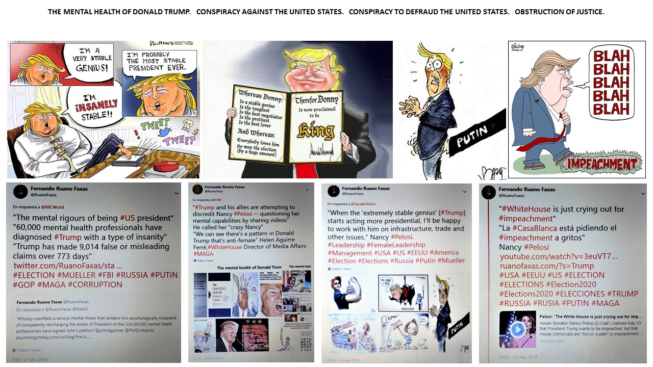 FERNANDO ANTONIO RUANO FAXAS. PELOSI. WHITE HOUSE. ELECTION. RUSSIA. PUTIN. MUELLER. FBI. THE MENTAL HEALTH OF DONALD TRUMP. CONSPIRACY AGAINST THE UNITED STATES. OBSTRUCTION OF JUSTICE