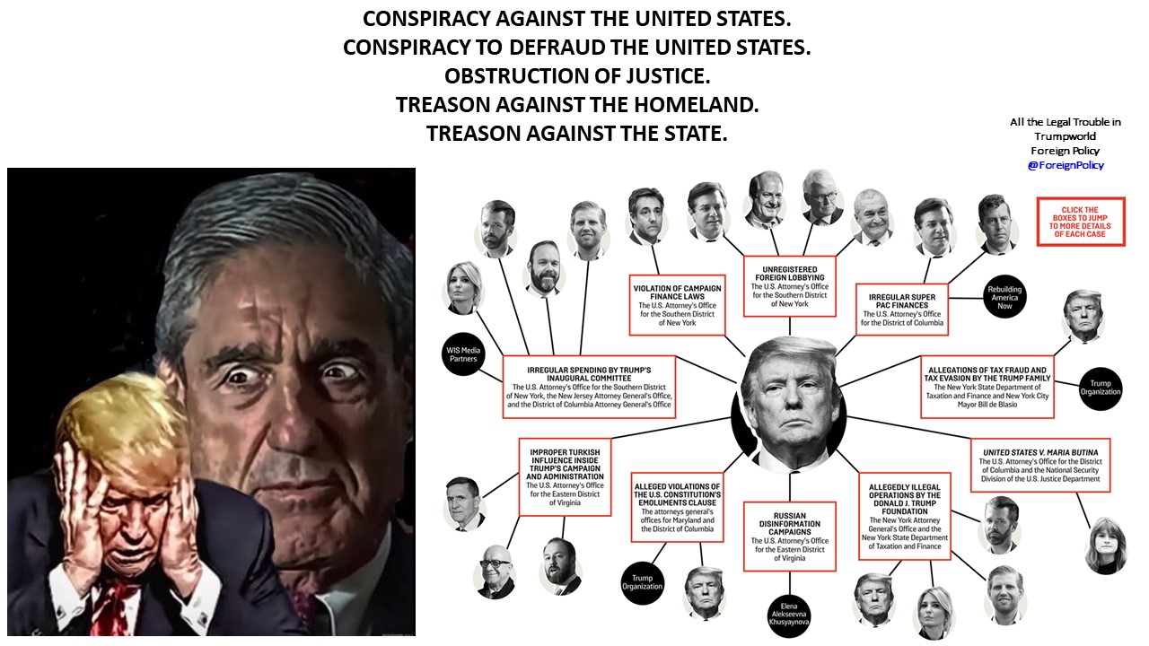 ELECTION, TRUMP, MUELLER, RUSSIA, PUTIN. CONSPIRACY AGAINST THE UNITED STATES. CONSPIRACY TO DEFRAUD THE UNITED STATES. OBSTRUCTION OF JUSTICE. TREASON AGAINST THE HOMELAND. TREASON AGAINST THE STATE