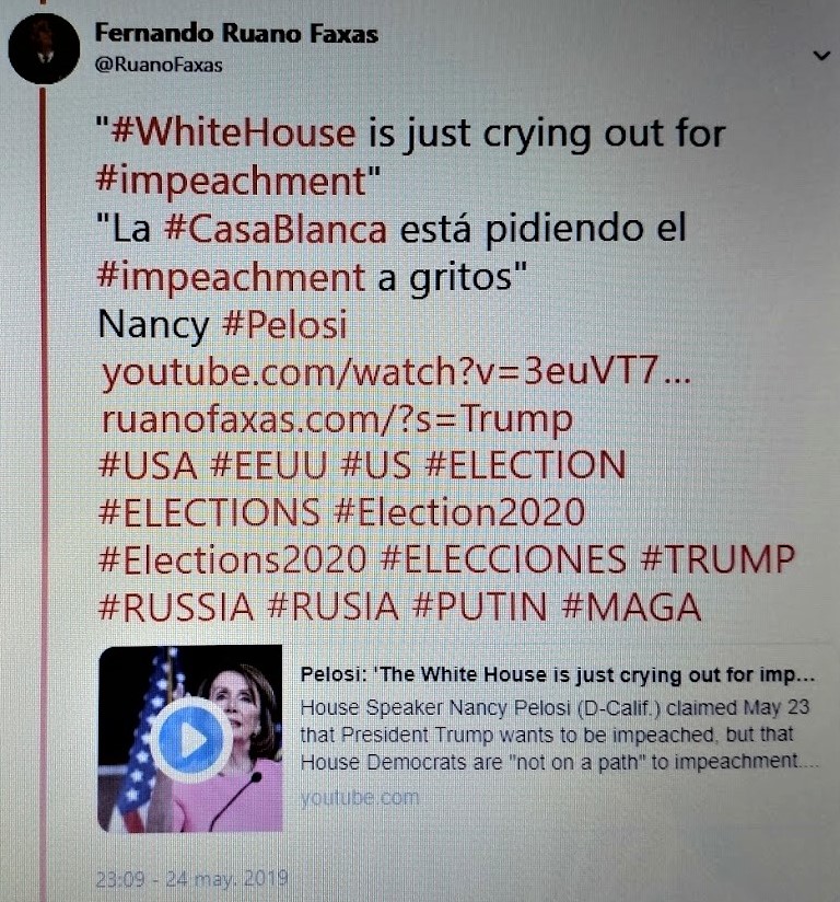 Fernando Antonio Ruano Faxas. The mental health of Trump, Pelosi, Crazy, Schumer, Election, Russia, Rusia, Putin, Mueller, FBI, CIA, Leadership, White House