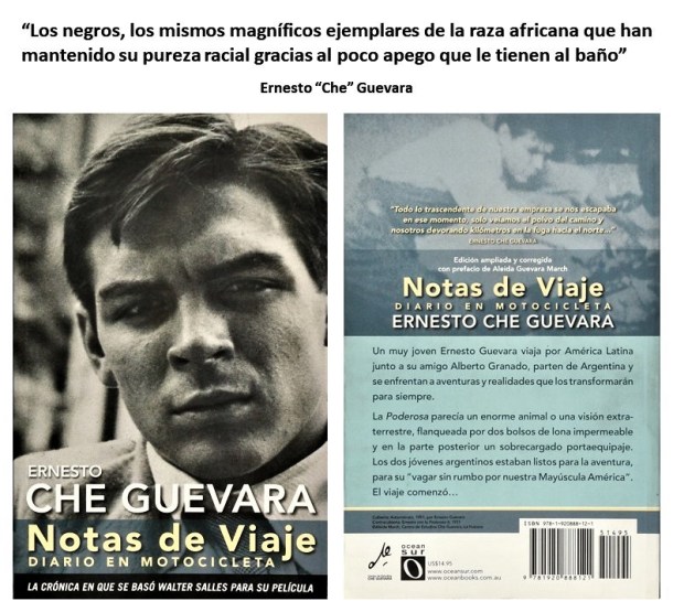 “Los negros, los mismos magníficos ejemplares de la raza africana que han mantenido su pureza racial gracias al poco apego que le tienen al baño” Ernesto Che Guevara. Diarios De Motocicleta: Notas de Viaje por America Latina.