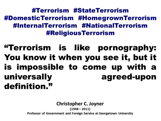 “Terrorism is like pornography: You know it when you see it, but it is impossible to come up with a universally agreed-upon definition.”