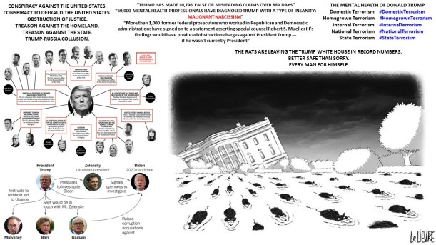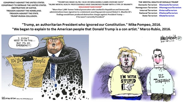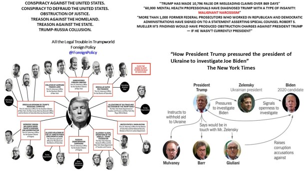 XXIV. Donald Trump en imágenes. Donald Trump in pictures. Donald Trump em imagens. Дональд Трамп в картинках. https://lnkd.in/ewKRn92 , https://lnkd.in/euWvjnk. […] “[Trump] a threat in my view, a threat to our core values and, folks, that fact of the matter is that 4 years of Donald Trump will be viewed as an aberration in American history. 8 years will fundamentally change who we are as a nation.” Joe Biden […] “Americans have no sense of history. And not much memory. They don’t remember what happened yesterday.” Howard Fast […] “Illiteracy in the United States: 93 million are illiterate or functionally illiterate, including Trump. 50 million adults are functionally illiterate. 43 million adults are illiterate […] 350,000 religious congregations in United States […] 313 religions and denominations in United States […] In the United States, fanaticism is a dangerous social cancer.” […] “We have just enough religion to make us hate, but not enough to make us love one another.” Jonathan Swift […] Nancy Pelosi on Trump insults: “I’m done with him. I don’t even want to talk about him. My stock goes up every time he attacks me, so what can I say, but let’s not spend too much time on that because that’s his victory, the diverter-in-chief, the diverter-of-attention-in-chief. Do people think there’s some impeachable offenses that the President committed? Yes. How serious are they? Are they criminal? Many people think they are. I don’t want to see him impeached, I want to see him in prison.” […] “Donald Trump Is the World’s Most Dangerous Man. Donald Trump is the leader of a new, hate-filled authoritarian movement. Nothing would be more harmful to the idea of the West and world peace than if he were to be elected president. George W. Bush’s America would seem like a place of logic and reason in comparison.” Der Spiegel […] “I used to say, either run for office or get a degree from Harvard Kennedy School. With this White House I’d say, buy Rosetta Stone and learn Russian.” John Kerry […] “Malcolm Nance [@MalcolmNance] states that, by their choices, actions, and statements, ‘Trump and Pence chose Russia’s values over America’s.’” Michael Lipkin @MLipkinWriter […]