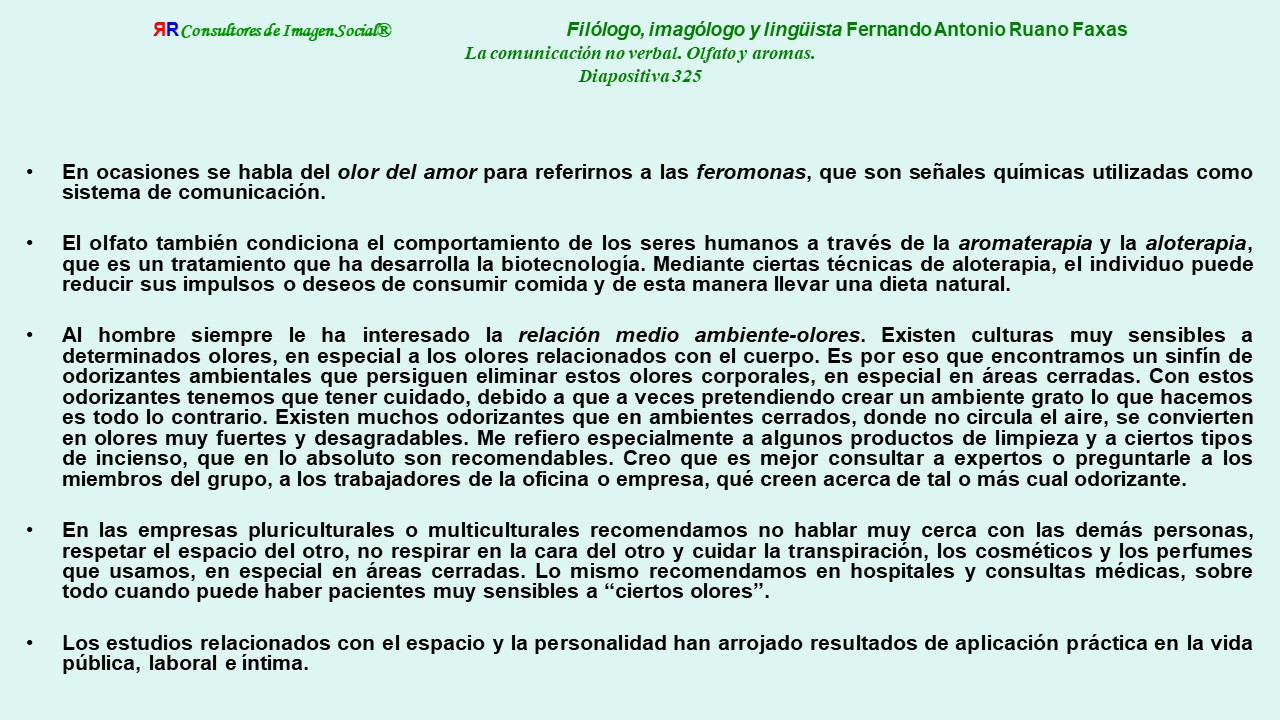 Fernando Antonio Ruano Faxas. Imagología, Comunicación no Verbal, Nonverbal Communication, Olfato y Aromas, 325