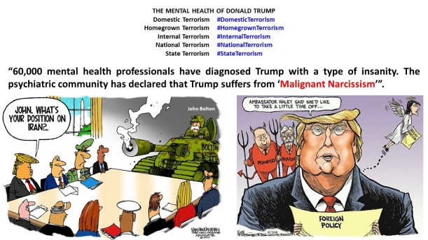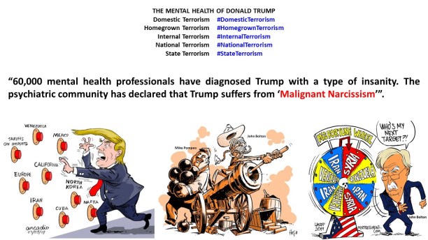 ¿A quién le creemos? Ya sabemos cómo las dictaduras militares del tipo de Irán, #China, #URSS (#Rusia #Russia #Putin), #Corea del Norte (North #Korea), Cuba (Fidel #Castro), Venezuela… manipulan la información en absolutamente todos los sentidos. Pero también sabemos que Donald Trump es un mentiroso patológico (pathological liar), un mentiroso en serie (serial liar). Hasta abril de 2019, en 802 días como presidente de los Estados Unidos, Trump ha dicho 9.451 mentiras. Trump dice, en promedio, 22 mentiras por día, según informan medios informativos tan prestigiosos internacionalmente como The Washington Post, The New York Times, CNN… Imagínense en qué situación está la cabeza de Trump que 60.000 profesionales de la salud mental, es decir psiquiatras, psicólogos, sociólogos…, lo han diagnosticado con un tipo de locura. La comunidad psiquiátrica ha declarado que Trump sufre de “#narcisismo maligno”, “malignant #narcissism”, un síndrome psicológico que, aparte del narcisismo, implica un trastorno de personalidad con comportamiento antisocial marcadamente peligroso, una alta agresividad, sadismo, entre otras cosas. ¡Imagínense los alcances del peligro en absolutamente todos los sentidos con una persona así! Y aquí están los resultados de poner a un loco en el poder, no solamente trae patas para arriba a Estados Unidos sino también a los países y gobiernos estrechamente relacionados con él, en particular #Israel, el país de los #judíos, y el gobierno encabezado por Benjamín #Netanyahu.