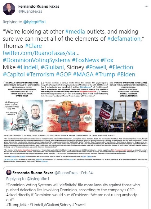 "Dominion Voting Systems has filed a $1.3 billion #defamation lawsuit against #Giuliani, who led #Trump's efforts to spread baseless claims about the 2020 #election. Giuliani falsely claimed Dominion conspired to flip votes to #Biden"https://t.co/JHtWj7Nu0E#CAPITOL #TERRORISM pic.twitter.com/AmHn72CjQs