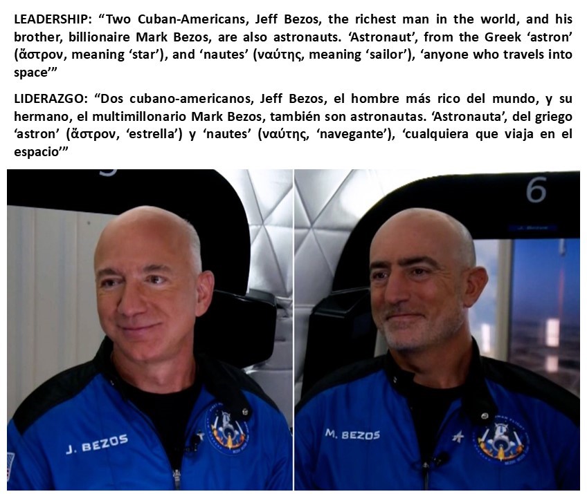 FERNANDO ANTONIO RUANO FAXAS. CUBA, CUBANOS, LEADERSHIP, MANAGEMENT. Two Cuban-Americans, Jeff Bezos, the richest man in the world, and his brother, billionaire Mark Bezos, are also astronauts