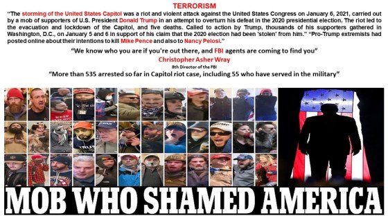 El #TERRORISMO DOMÉSTICO, #TerrorismoDoméstico, DOMESTIC #TERRORISM, #DomesticTerrorism, es decir #Trump, #DonaldTrump, Right-wing terrorism (grupos de blancos y pseudo-blancos o falsos blancos racistas, segregacionistas, anti-latinos, anti-hispanos, anti-mexicanos, anti-negros, anti-judíos, anti asiáticos…), #MAGA, #GOP, #WhiteSupremacy, #ProudBoys, #OathKeepers, #Militia, #Boogaloo movement, Groyper Army, #QAnon, Neo-Nazis (#NeoNazism), #KuKluxKlan (#KKK), Three Percenters (3 Percenters, 3%ers, III%ers), National Rifle Association (#NRA, Asociación Nacional del Rifle. El 4 de septiembre de 2019 la Junta de Supervisores de San Francisco, California, aprobó una resolución que declaró a la NRA una organización terrorista nacional. On September 4, 2019, the San Francisco Board of Supervisors passed a resolution which declared the NRA a domestic terrorist organization), Religious #Fanaticism (Religious Terrorism, #Fanatismo Religioso, Terrorismo Religioso, principalmente sectas ignorantes del #cristianismo), Anti-vaxxers (Anti-vax, #AntiVaxxers #AntiVax, grupos de radicales anti-vacunas), Anti-#abortion, Eco-terrorism…