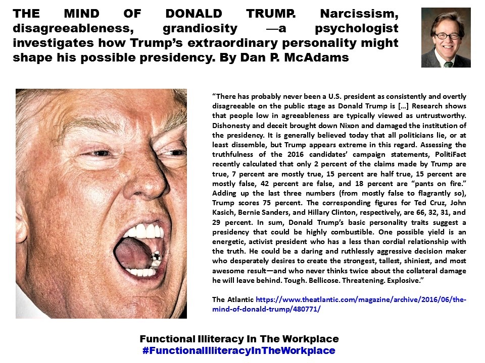 FERNANDO ANTONIO RUANO FAXAS.FUNCTIONAL ILLITERACY IN THE WORKPLACE. THE MIND OF DONALD TRUMP.NARCISSISM,DAN P. MCADAMS