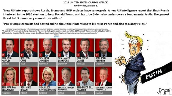 “New US intel report shows Russia, Trump and GOP acolytes have same goals. A new US intelligence report that finds Russia interfered in the 2020 election to help Donald Trump and hurt Joe Biden also underscores a fundamental truth: The gravest threat to US democracy comes from within.”