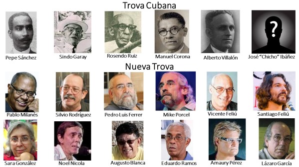 En la llamada “Nueva Trova” aparecen nombres como los de Silvio Rodríguez, Pablo Milanés, Pedro Luis Ferrer, Mike Porcel, Noel Nicola, Amaury Pérez, Vicente Feliú Miranda, que es el hermano mayor de Santiago Feliú Sierra, Sara González, Carlos Varela, Augusto Blanca Gil, Eduardo Ramos Montes, Lázaro Silvestre García Gil y muchos otros y otras.