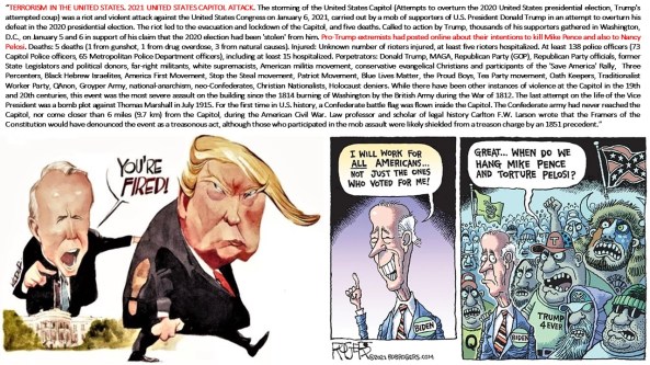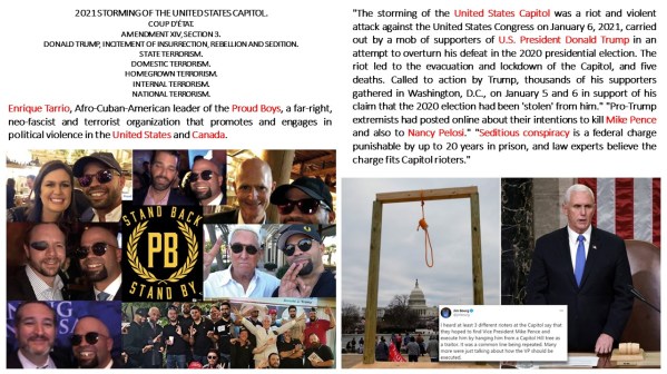 “El terrorismo doméstico en los Estados Unidos consiste en incidentes que se confirman como actos terroristas domésticos. Estos ataques se consideran domésticos porque ocurrieron dentro de los Estados Unidos y fueron realizados por ciudadanos estadounidenses y/o residentes permanentes de los Estados Unidos. A partir de 2021, el gobierno de los Estados Unidos considera que los supremacistas blancos son la principal amenaza del terrorismo interno”.