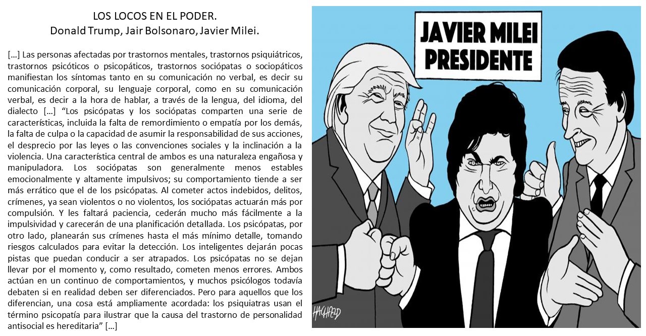 ← back to “[…] Con respecto a Javier Milei y la actual Argentina, la pregunta que se hacen muchos expertos en política y economía es la misma: ¿se producirá ahora en Argentina una “peruanización”, es decir gobiernos y presidentes inestables que son destituidos en poco tiempo? Como comenté ya el 22 de noviembre: “¿Javier Milei durará los 4 años establecidos en la presidencia de Argentina o lo destituirán por incompetencia gubernamental? ¿A Javier Milei los argentinos le aplicarán impeachment o destitución o proceso de destitución o juicio político mucho antes de terminar su mandato?” […] Tiempo al tiempo, pero todo parece indicar que la caída de Javier Milei está próxima: “tic, tac…, tic, tac…, tic, tac…” […]”