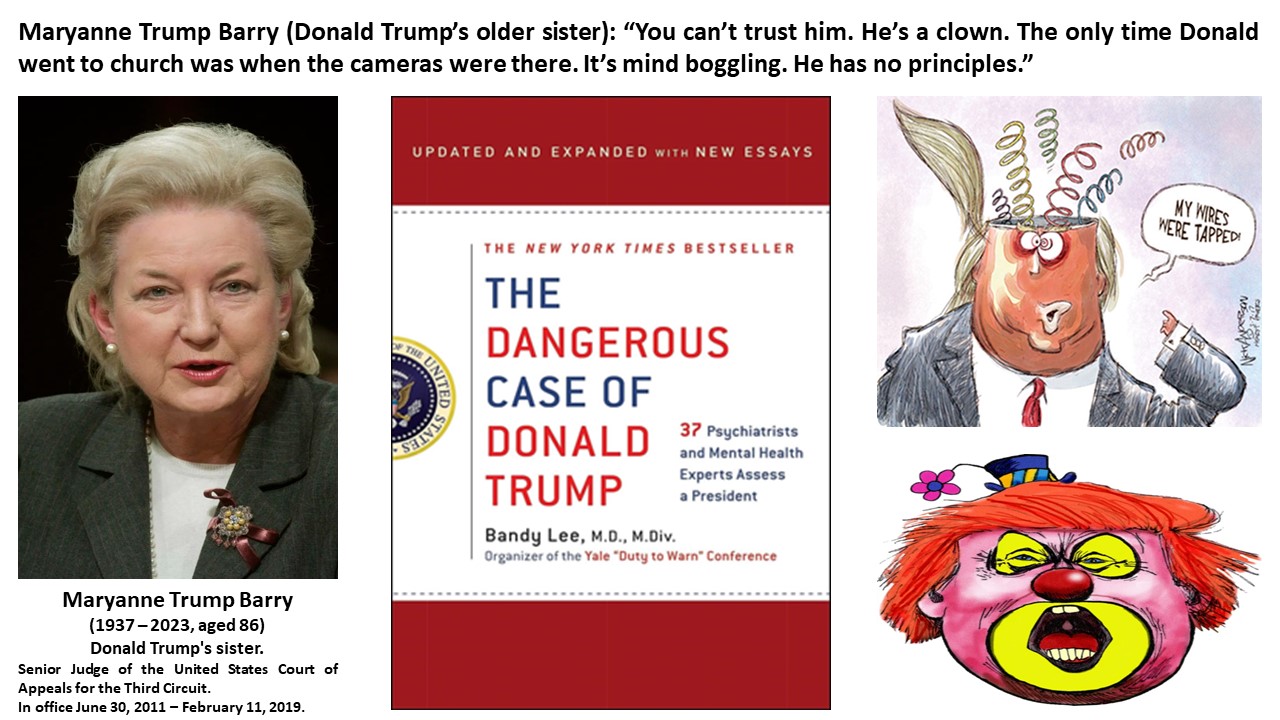 Fernando Antonio Ruano Faxas. Maryanne Trump Barry, He’s a clown, He has no principles. Bandy X. Lee. THE DANGEROUS CASE OF DONALD TRUMP. Dementia, crazy, terrorism, Capitol, coup, Putin, FBI, DOJ, DHS, IRS, election, Biden