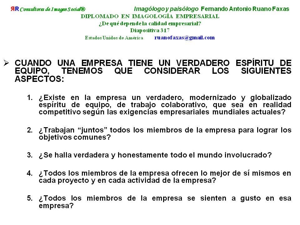 1.¿Existe en la empresa un verdadero, modernizado y globalizado espíritu de equipo, de trabajo colaborativo, que sea en realidad competitivo según las exigencias empresariales mundiales actuales?