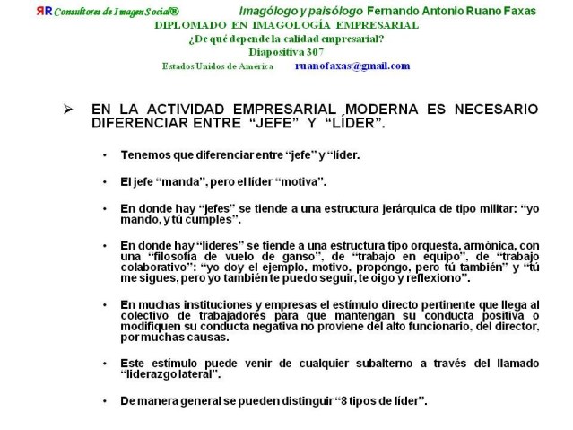 EN LA ACTIVIDAD EMPRESARIAL MODERNA ES NECESARIO DIFERENCIAR ENTRE “JEFE” Y “LÍDER”.