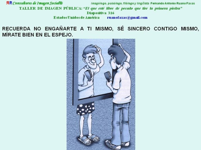 RECUERDA NO ENGAÑARTE A TI MISMO, SÉ SINCERO CONTIGO MISMO, MÍRATE BIEN EN EL ESPEJO. RECUERDA LO QUE PASA CON LA MENTIRA Y CON LOS TIPOS DE MENTIROSO http://knol.google.com/k/fernando-antonio-ruano-faxas/por-qu%C3%A9-la-gente-no-se-acepta-y-se/19j6x763f3uf8/73#