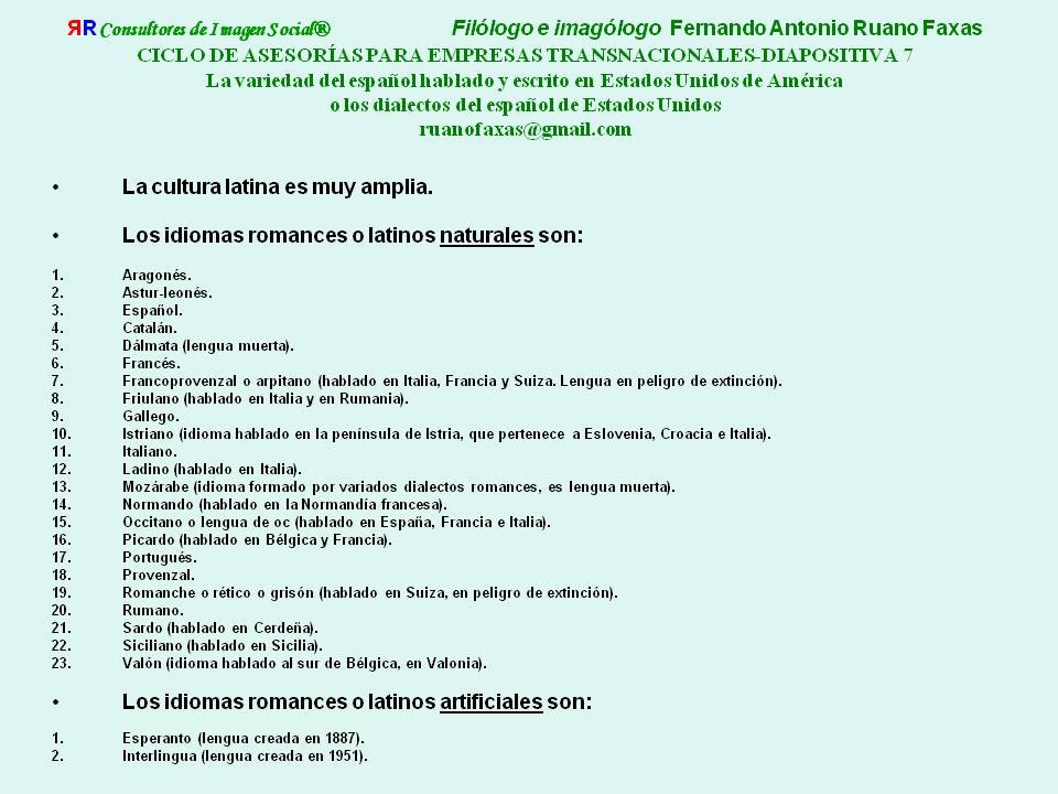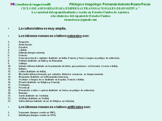 Parte de la asesoría del filólogo e imagólogo cubano Fernando Antonio Ruano Faxas sobre el tema “La diversidad y la complejidad dialectal del español hablado y escrito en los Estados Unidos de América”