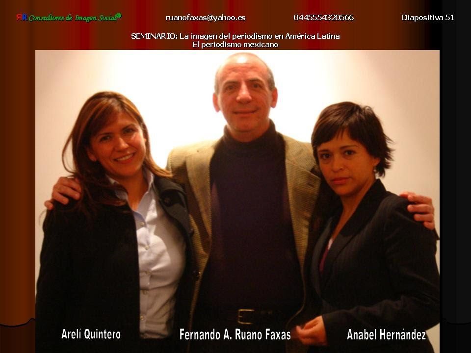 En este sentido el miedo, el temor, el terror: http://knol.google.com/k/fernando-antonio-ruano-faxas/abordando-el-tema-del-miedo-el-temor-y/19j6x763f3uf8/140# de los dueños de los medios de comunicación y de muchos periodistas aparecen como se narra en las novelas El señor presidente, de Miguel Ángel Asturias y La fiesta del chivo, de Mario Vargas Llosa. El periodismo, los medios masivos de comunicación y ciertos periodistas en concreto han tenido en México épocas de historia triste y bochornosa, en especial por la complicidad que han mantenido con los fuerzas del poder gubernamental, cuestión que, al pasar de los tiempos y luego de múltiples y arriesgadas investigaciones, han arrojado datos degradantes y humillantes para las instituciones y los periodistas involucrados en dicha complicidad.[35] El periodismo mexicano siempre ha sido una labor de alto riesgo, en todos los sentidos: http://knol.google.com/k/fernando-antonio-ruano-faxas/panorama-de-la-incidencia-del/19j6x763f3uf8/135# ; pero este riesgo ha llegado a su más alto nivel a finales del siglo XX y principios del siglo XXI […] ¡Y lo que han pasado y siguen pasando Carmen Aristegui y José Gutiérrez Vivó a estas alturas del siglo XXI y en el supuesto mundo moderno de la tan sonada “libertad de expresión”…! ¡“Las de Caín…”! […] Desde que Carmen Aristegui empezó a trabajar como periodista, 1987, no existe en México y el mundo un tema relevante, un problema trascendental, un asunto serio, en el que no esté involucrada “periodísticamente”. Esta periodista ha estado metida “informativamente”, “comunicativamente”, en cuanto escándalo relevante se ha producido en México, y algunos de estos escándalos han sido todo un tremendo problema: http://mexico.cnn.com/nacional/2011/02/24/una-trayectoria-controvertida […] Siempre me pregunto lo mismo: ¿cómo es que Carmen Aristegui sigue viva en México?, ¿¡qué raro que en México no hayan matado a esta valiente y talentosa mujer!? […] A José Gutiérrez Vivó lo liquidó el gobierno de Vicente Fox: http://knol.google.com/k/un-vistazo-muy-por-arriba-y-desde-el-lado-gabacho-o-gringo-al-gobierno-del# , y hoy, en el gobierno de Felipe Calderón: http://knol.google.com/k/la-guerra-perdida-de-m%C3%A9xico-contra-el-narcotr%C3%A1fico-m%C3%A9xico-en-estado-de-colapso# , la persecución en su contra continúa: http://www.proceso.com.mx/rv/modHome/detalleExclusiva/82534 […] ¿No que “el malo de la película” era el venezolano Hugo Chávez que censuró a RCTV –Radio Caracas Televisión–? ¿No que “el malo de la película” era el cubano Fidel Castro que ha censurado cuanta libertad de expresión ha asomado la cabeza? ¡Ahhhh, bueno…! ¿No recuerda usted la canción Fiesta, de la vedette italiana Rafaela Carrá? Ahí, en esa canción, dice Rafaela: “He sabido que es peligroso decir siempre la verdad…” “¡Fiesta, qué fantástica, qué fantástica es esta fiesta…!” “Al diablo con la libertad…” Siempre que oigo, veo o leo a Carmen Aristegui y a Gutiérrez Vivó –lo que para mí es todo un gran fiestón de cultura, civilidad y actualización– recuerdo estas palabras de la canción de Rafaela. ¡Y mire que estos dos periodistas han tenido y siguen teniendo problemas en México…!; pero ahí están, y en los más elevados ratings de televidencia, de audiencia, de lectura de periódicos… ¡Qué carreras tan arriesgadas y exitosas las de estos dos periodistas mexicanos…! Entonces, como se decía antes: “¡Qué Dios los bendiga y los proteja…!” Y de paso, si no ha visto a Rafaela Carrá “en acción”, pues véala; va a quedar encantado: ¡todo un espectáculo! – http://www.youtube.com/watch?v=7tdMP5i3Cj0 –, como Aristegui y Gutiérrez Vivó. Para considerar algunos de los aspectos de la censura de Carmen Aristegui en México, véase, por ejemplo: http://www.youtube.com/watch?v=dOXOSlKxhlc , http://www.youtube.com/watch?v=_ZbWiiC6qVc , http://www.youtube.com/watch?v=yopzeilvgqA , http://www.youtube.com/watch?v=bvZXewptf-g , Jenaro Villamil (2008). “Una grabación reveladora”, en Proceso, No. 1634:34-38. Y en estos hostigamientos y persecuciones a los periodistas mexicanos no solamente aparecen involucrados los gobiernos y el crimen organizado, el narcoterrorismo, el narcotráfico, sino que también ahí está la iglesia católica mexicana, ¡por supuesto!, ¡que le pregunten a la periodista mexicana Sanjuana Martínez! El tema del control que tradicionalmente ha ejercido la iglesia católica mexicana sobre los gobiernos mexicanos, el pueblo mexicano y los medios de comunicación mexicanos lo he tratado en, por ejemplo, http://knol.google.com/k/fernando-antonio-ruano-faxas/los-alcances-de-la-depravaci%C3%B3n-del-cura/19j6x763f3uf8/117# . Ahí he dicho: