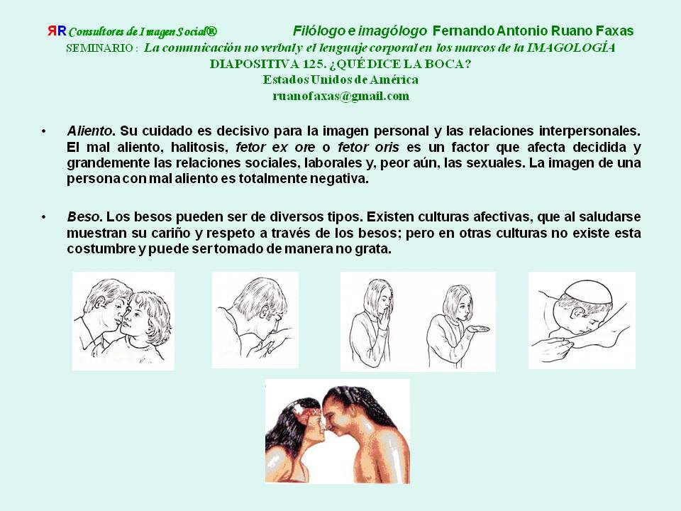 El aliento o aire espirado es uno de los signos de aceptación-rechazo más importantes de la persona. Su cuidado es decisivo para la imagen personal y las relaciones interpersonales. La probabilidad de que en México las personas puedan tener mal aliento es grande. Todas las encuestas de opinión arrojan que el mal aliento, halitosis, fetor ex ore o fetor oris es un factor que afecta decidida y grandemente las relaciones sociales, laborales y, peor aún, las sexuales. La imagen de una persona con mal aliento es totalmente negativa. La causa de este padecimiento, que ya desde antes de Cristo era objeto de comentarios, es bacteriana, y está relacionada en mucho, y entre otros factores, con la gingivitis, una afectación que padece más del 90% de la población mexicana, y con ciertos hábitos alimenticios, el cigarro, el tabaco y las pipas. En varias ocasiones hemos hablado de las culturas antiolores, como es el caso de los Estados Unidos y algunos países europeos. Recomendamos controlar en la medida de lo posible y lo conveniente nuestros hábitos de hablar muy cerca con las demás personas, tanto en público, como en la actividad laboral. Cuando se habla muy cerca se siente totalmente el aliento, lo que no está mal, por ejemplo, en las relaciones íntimas o en los países donde es habitual y correcto relacionarse muy cercanamente, como es el caso de la mayoría de los países árabes y Japón: