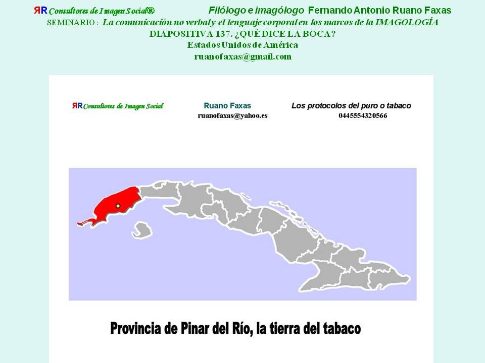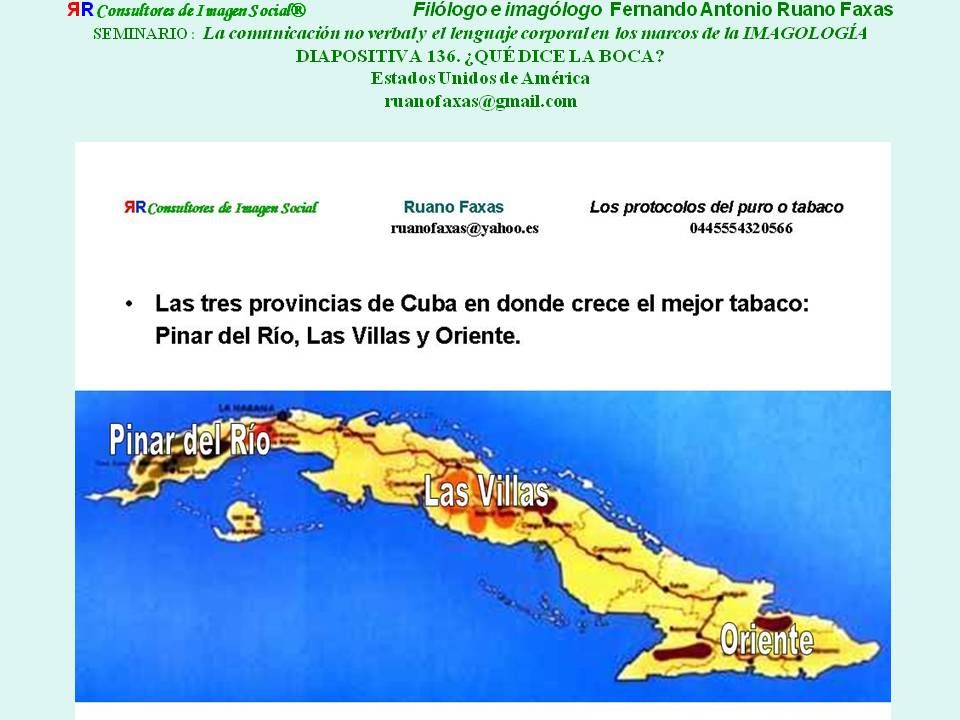 Los mejores puros son los de Cuba, y también son agradables –pero jamás comparables– los puros de Santo Domingo e Indonesia. En Cuba hay 3 provincias en donde crece el buen tabaco: Oriente, Las Villas y Pinar del Río […]Justamente la tierra roja del lugar llamado Vuelta Abajo, en la provincia cubana de Pinar del Río, hace al tabaco cubano inigualable. Además, Cuba está situada muy cerca del Trópico de Cáncer, con una humedad relativa del 79% y una temperatura media de 25 grados, lo que hace el ambiente ideal para mantener a los puros, tabacos o habanos frescos, en perfectas condiciones […]Dentro de las restricciones más severas en cuanto a la fuma de puros, en este caso solamente de puros cubanos, están las leyes estadounidenses, que prohíben terminante la compra-venta y la fuma de puros cubanos en territorio de ese país, y que pueden llegar a sancionar hasta con 250 000 dólares de multa y/o 10 años de cárcel a una persona, y un millón de dólares de multa a una empresa o institución que violen esta ley. Por esto, justamente, los cubanos le llamamos al puro cubano en Estados Unidos “El Fruto Prohibido”. Como es conocido por todos, estas leyes estadounidenses que prohíben el consumo de puros cubanos en ese país son infringidas constantemente, a todos los niveles y en todas las esferas sociales, con todo y el alto riesgo que la infracción trae consigo. Con frecuencia se observa que muchos estadounidenses burlan las leyes de su país para asistir a las célebres reuniones de fumadores de habanos en Cuba, y para asistir también a los postgrados que sobre los protocolos del puro, tabaco o habano se imparten en cuba.