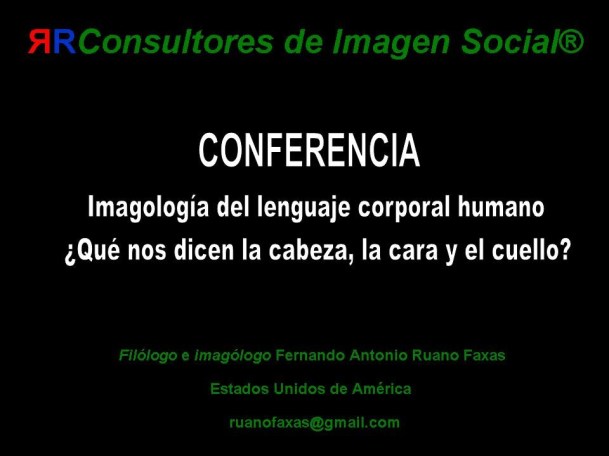 IMAGOLOGÍA DEL LENGUAJE CORPORAL HUMANO. ¿QUÉ NOS DICEN LA CABEZA, LA CARA Y EL CUELLO?, es parte de mi libro registrado con los siguientes datos: Fernando Antonio Ruano Faxas. El lenguaje corporal humano. Un enfoque imagológico en base a criterios verbales y no verbales, con 808 páginas, disponible a través de http://openlibrary.org/b/OL21783353M/El_lenguaje_corporal_humano._Un_enfoque_imagológico_en_base_a_criterios_verbales_y_no_verbales .