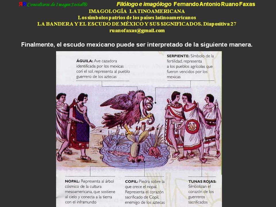 […] Hasta ahora hemos dado una explicación más o menos tradicional (?), habitual, común, de la historia del escudo mexicano y la fundación de México […] Pero, realmente, todo esto es uno de los tantos mitos acerca de México. Como dice Francisco Martín Moreno en su libro 100 mitos de la historia de México […] “el águila que aún adorna nuestra bandera probablemente nunca existió […] No hubo ningún águila devorando a ninguna serpiente [y los aztecas, en comparación con los otros grupos humanos de la región en aquellos momentos de ‘la fundación’] eran los más pobres y bárbaros” […] Y, repito, lo peor de todo esto es que, inclusive los alumnos de postgrado en México, mexicanos, en el mejor de los casos, hablan del ya famoso y tradicional mito de la fundación de México […] porque, en el peor de los casos, acerca de todo esto no tienen ni la menor idea funcional […] todo lo cual se relaciona con lo que ya hemos comentado en http://knol.google.com/k/analfabetismo-funcional-analfabetismo-de-segundo-grado-o-analfabetismo-de-grado# , http://knol.google.com/k/fernando-antonio-ruano-faxas/toquemos-el-tema-de-la-lectura-lecturas/19j6x763f3uf8/158# , etc. […] y todo esto en el contexto de http://knol.google.com/k/fernando-antonio-ruano-faxas/la-educaci%C3%B3n-y-la-instrucci%C3%B3n-en-m%C3%A9xico/19j6x763f3uf8/165# […]
