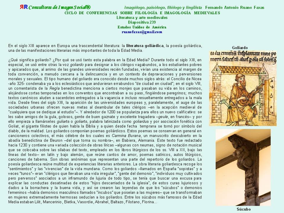 En el siglo XIII aparece en Europa una trascendental literatura: la literatura goliárdica, la poesía goliárdica, una de las manifestaciones literarias más importantes de toda la Edad Media.