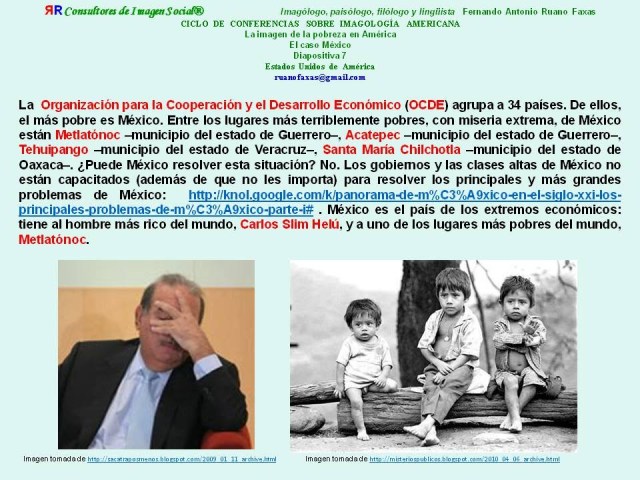 […] “Este país es extraño: las mismas leyes de la naturaleza parecen estar revertidas […] Los mexicanos no son pobres. Con una tierra como ésta, nadie es pobre. Su particularidad ha sido inventar la injusticia antes que la pobreza […]” (Antaki, 1996). Nuestro amado México siempre aparece, “para variar”, como líder de la pobreza o entre los más pobres de América y del mundo entero. Al respecto véase: “Estudio de la CEPAL ubica a México como líder en pobreza”: http://www.telesurtv.net/noticias/secciones/nota/62142-NN/estudio-de-la-cepal-ubica-a-mexico-como-lider-en-pobreza/ , http://www.eluniversal.com.mx/primera/33960.html , http://www.elimparcial.com/EdicionEnLinea/Notas/Nacional/20112009/415121.aspx , http://eleconomista.com.mx/notas-impreso/internacional/2009/11/19/mas-pobres-herencia-crisis-cepal . Y también “para variar” México es líder en fraudes, en corrupciones de todo tipo: http://www.jornada.unam.mx/2009/11/20/index.php?section=economia&article=025n2eco , http://web.zocalo.com.mx/seccion/articulo/es-mexico-un-pais-de-fraudes , http://www.cnnexpansion.com/mi-dinero/2009/11/19/mexico-con-mas-fraudes-por-la-crisis , http://www.eluniversal.com.mx/notas/641105.html .