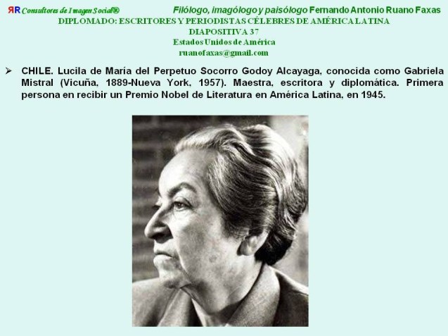 · 1945: Gabriela Mistral (Chile: Vicuña 1889-Nueva York 1957).