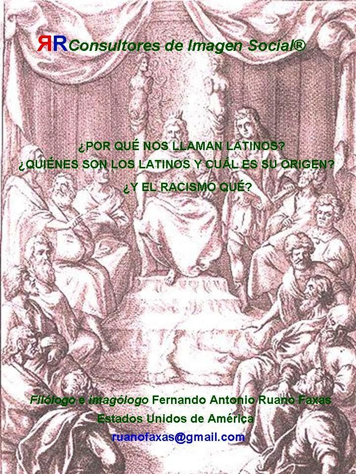 ¿POR QUÉ NOS LLAMAN LATINOS? ¿QUIÉNES SON LOS LATINOS Y CUÁL ES SU ORIGEN?¿Y EL RACISMO QUÉ?es parte de milibro registrado con los siguientes datos:Fernando Antonio Ruano Faxas.Algunos recursos para valorar la comunicación a través del lenguaje oral, del lenguaje escrito y del lenguaje corporal: El área geográfica y los climas, Esferas socioculturales, Los estilos, La edad, El sexo, El tabú y la Comunicación no verbal, con 604 páginas, disponible a través de http://openlibrary.org/b/OL22647223M/Algunos_recursos_para_valorar_la_comunicaci%C3%B3n_a_trav%C3%A9s_del_lenguaje_oral__del_lenguaje_escrito_y_del_lenguaje_corporal__El_%C3%A1rea_geogr%C3%A1fica_y_los_climas__Esferas_socioculturales__Los_estilos__La_edad__El_sexo__El_tab%C3%BA_y_la_Comunicaci%C3%B3n_no_verbal.