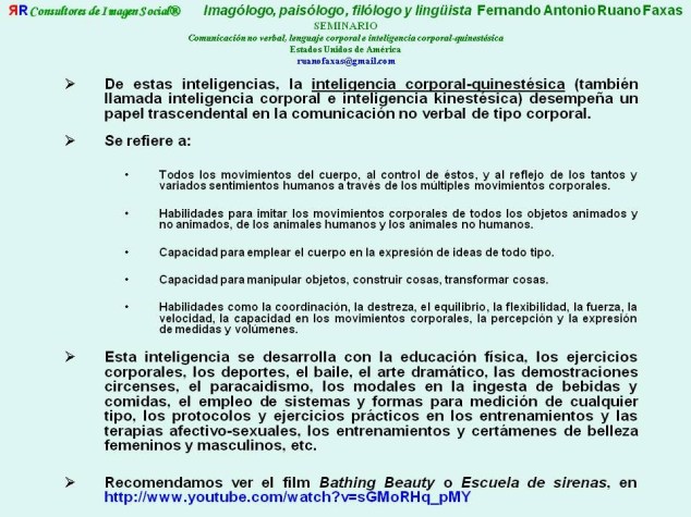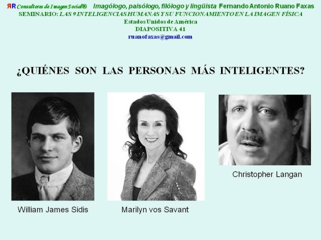 Claro, no se trata de que tú o aquél o aquélla digan que éste o ésta es inteligente, que su hijo o hija es inteligente, y ya, que todos creamos esto porque sí, y fuera. No, no se trata de eso. Para valorar la inteligencia o vemos lo que la gente hace u oímos lo que la gente dice o leemos lo que la gente escribe […] Es decir, podemos medir la inteligencia, las inteligencias, solamente a través de, por un lado, la expresión verbal o comunicación verbal o lenguaje verbal, o sea lo que la gente habla o escribe, y, por otro lado, la expresión corporal o comunicación no verbal o lenguaje no verbal, o sea lo que la gente expresa con su cuerpo, lo que la gente hace con sus manos, lo que la gente construye […] Y tratar la comunicación verbal y la comunicación no verbal no es fácil. La mayoría de la gente no tiene ideas de esto, de los alcances de todo esto: http://knol.google.com/k/fernando-antonio-ruano-faxas/qu%C3%A9-es-en-realidad-la-comunicaci%C3%B3n-no/19j6x763f3uf8/13# , http://knol.google.com/k/comentarios-acerca-de-la-semi%C3%B3tica-como-fundamento-para-el-curso-de# , http://knol.google.com/k/fernando-antonio-ruano-faxas/qu%C3%A9-dicen-los-gestos-gestos-y-ademanes/19j6x763f3uf8/61# , http://knol.google.com/k/lenguaje-corporal-o-lenguajes-corporales-o-comunicaci%C3%B3n-no-verbal-o-cnv-o# , http://knol.google.com/k/fernando-antonio-ruano-faxas/la-comunicaci%C3%B3n-verbal-y-la/19j6x763f3uf8/49# […] Ustedes, por ejemplo, que veo que la inmensa mayoría son latinos de diferentes países, de diferentes regiones, ¿qué saben realmente acerca de la latinidad? ¿Por qué nos llaman latinos?: http://knol.google.com/k/por-qu%C3%A9-nos-llaman-latinos-qui%C3%A9nes-son-los-latinos-y-cu%C3%A1l-es-su-origen-y-el# […] ¿Y ustedes, los que hablan lengua española o castellano, qué saben en realidad de su idioma y sus dialectos, de sus geolectos, de sus sociolectos?: http://knol.google.com/k/panorama-imagol%C3%B3gico-del-sistema-ling%C3%BC%C3%ADstico-espa%C3%B1ol-o-imagolog%C3%ADa-de-la-lengua# […] Y a la mayoría de ustedes les han hecho estudios biométricos por muy variadas razones. ¿Y conocen la importancia de su voz, de las voces? http://knol.google.com/k/panorama-imagol%C3%B3gico-del-sistema-ling%C3%BC%C3%ADstico-espa%C3%B1ol-o-imagolog%C3%ADa-de-la-lengua# […]